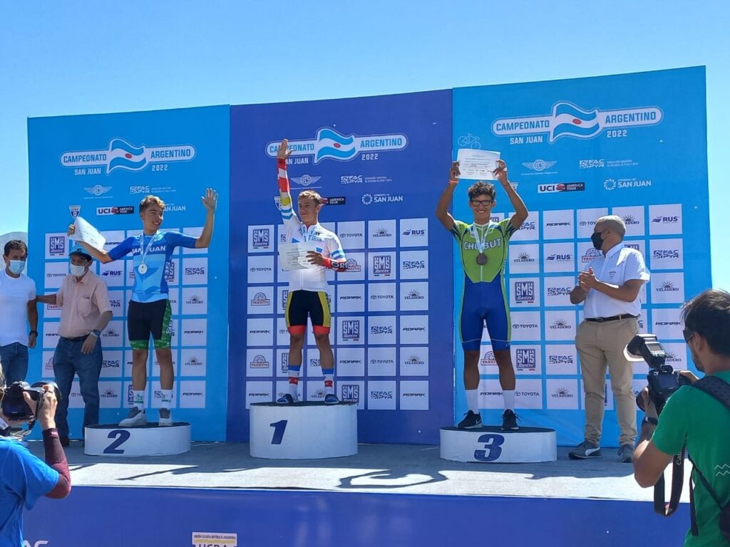 El ciclista de Puerto Madryn se subió al podio en la Contra Reloj Individual de la categoría Junior. Su compañero Valentino Aciares finalizó 20°.
