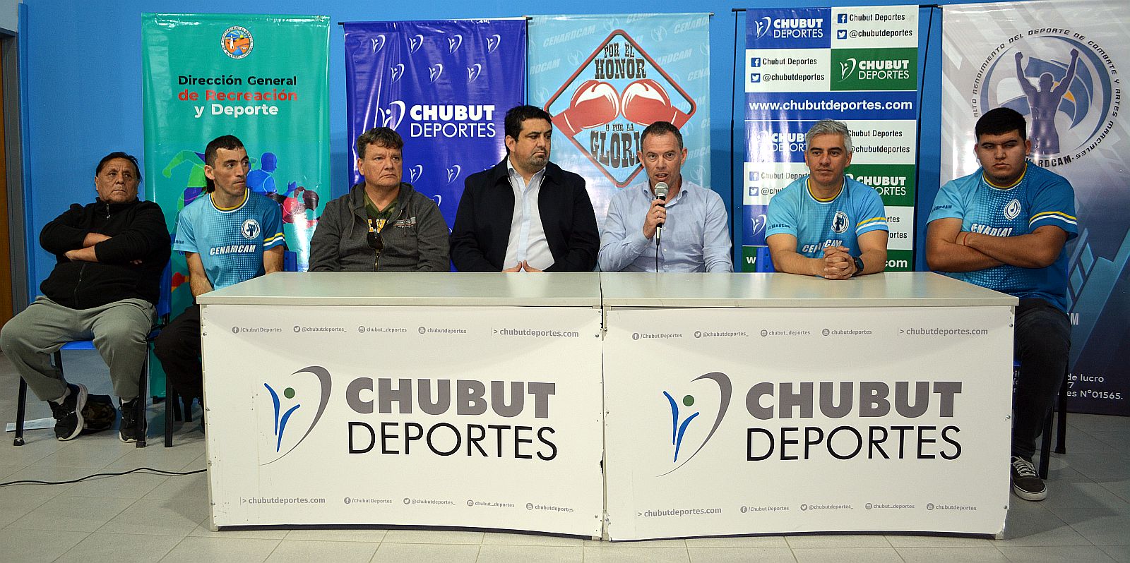 Participaron del lanzamiento el gerente General del ente deportivo provincial, Brian Oggero, el secretario de Gobierno, Educación y Coordinación del Gabinete municipal, Miguel Larrauri, el director General de Deportes y Recreación de Rawson, Gastón Williams, el profesor Andrés Maidana, responsable del Cenardcam y organizador del evento, el presidente de la Comisión Municipal de Boxeo de Rawson Segundo Mansilla y los boxeadores capitalinos, Eduardo “Torito” Sepúlveda y Fernando Coronel.