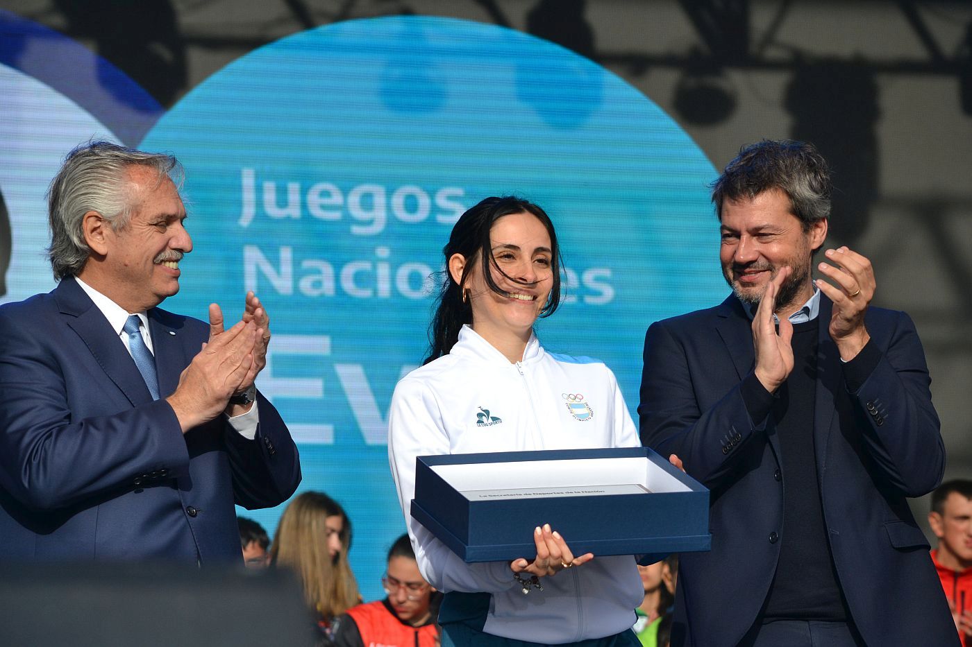 En dicho acto, el presidente Fernández hizo reconocimientos a deportistas destacados en los recientes juegos Suramericanos desarrollados en Asunción, Paraguay, entre las que se encontraba la chubutense Salma Antorena, en lo que fue la primera gran alegría para nuestra provincia en este evento.