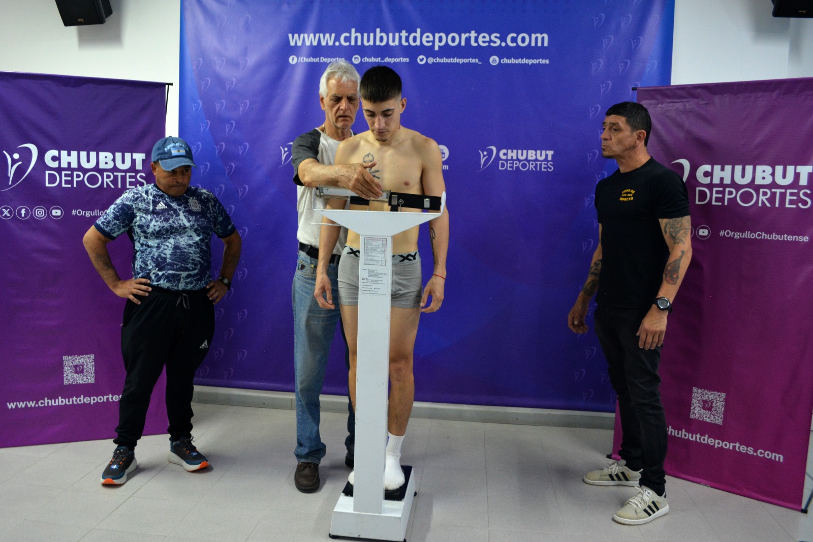 El pesaje se realizó este jueves en el Auditorio de Chubut Deportes pasado el mediodía. En lo que respecta a la pelea de fondo, el portuario acusó en la balanza 61kg; mientras que el bonaerense 60 kg clavados.