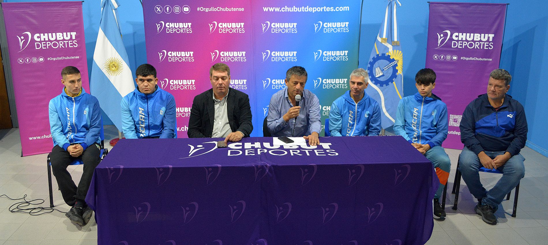 Participaron del lanzamiento el presidente del ente deportivo provincial, Milton Reyes, el intendente municipal Damián Biss, el director General de Deportes y Recreación de Rawson, Gastón Williams, el profesor Andrés Maidana, responsable del Cenardcam y organizador del evento y los boxeadores locales, protagonistas de la velada, Fernando Coronel, Daniel Delgado y Gabriel Burgos.