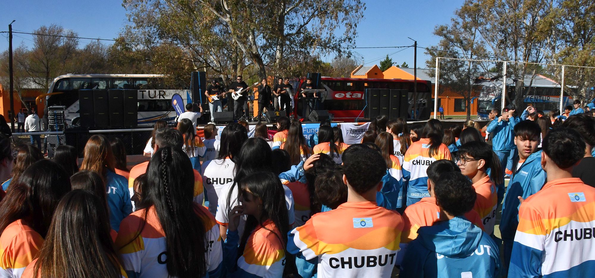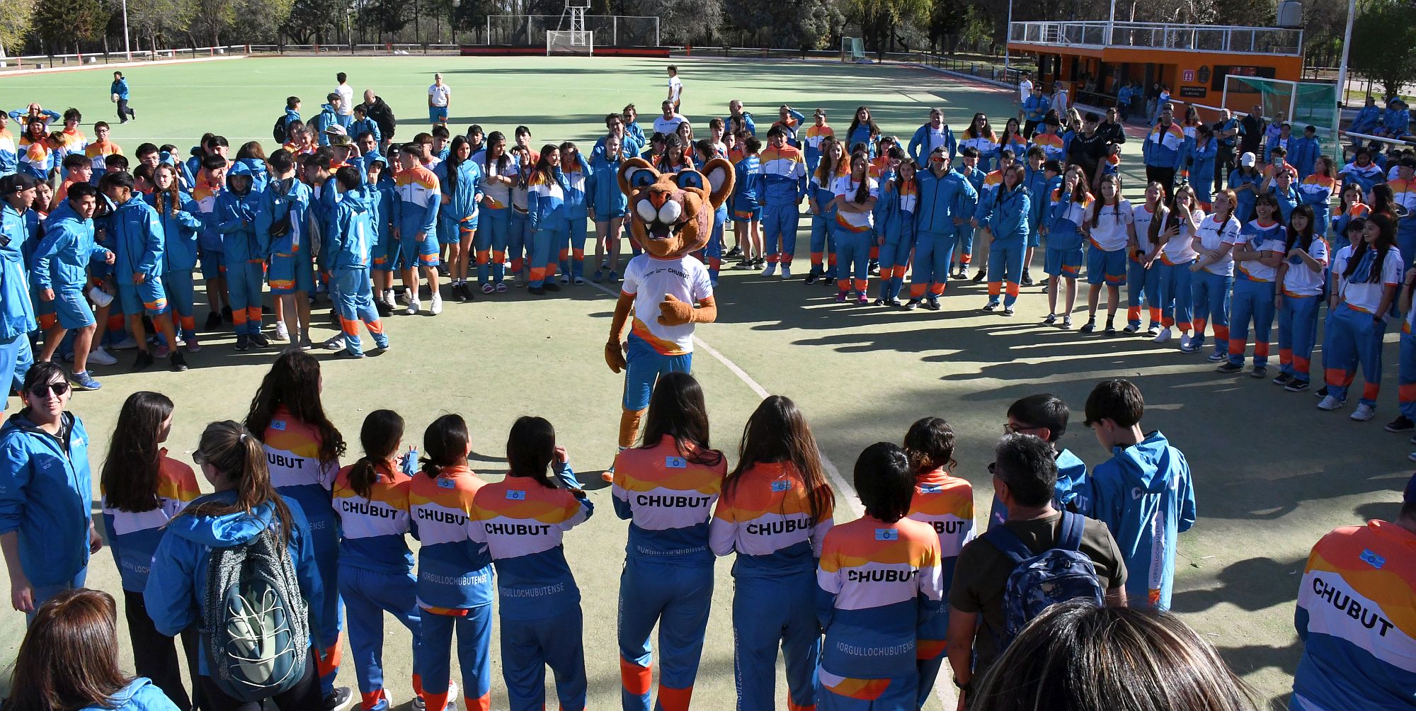 La delegación chubutense está integrada por un total de 400 personas, de 23 localidades chubutenses, que viajaron en nueve colectivos, una vez concluido el colorido acto, que contó con la actuación en vivo del grupo tropical “Marea” y la presentación Mascota oficial de la delegación denominada GOLNY: un joven puma patagónico que simboliza la garra, la juventud y el espíritu de superación de los deportistas chubutenses.