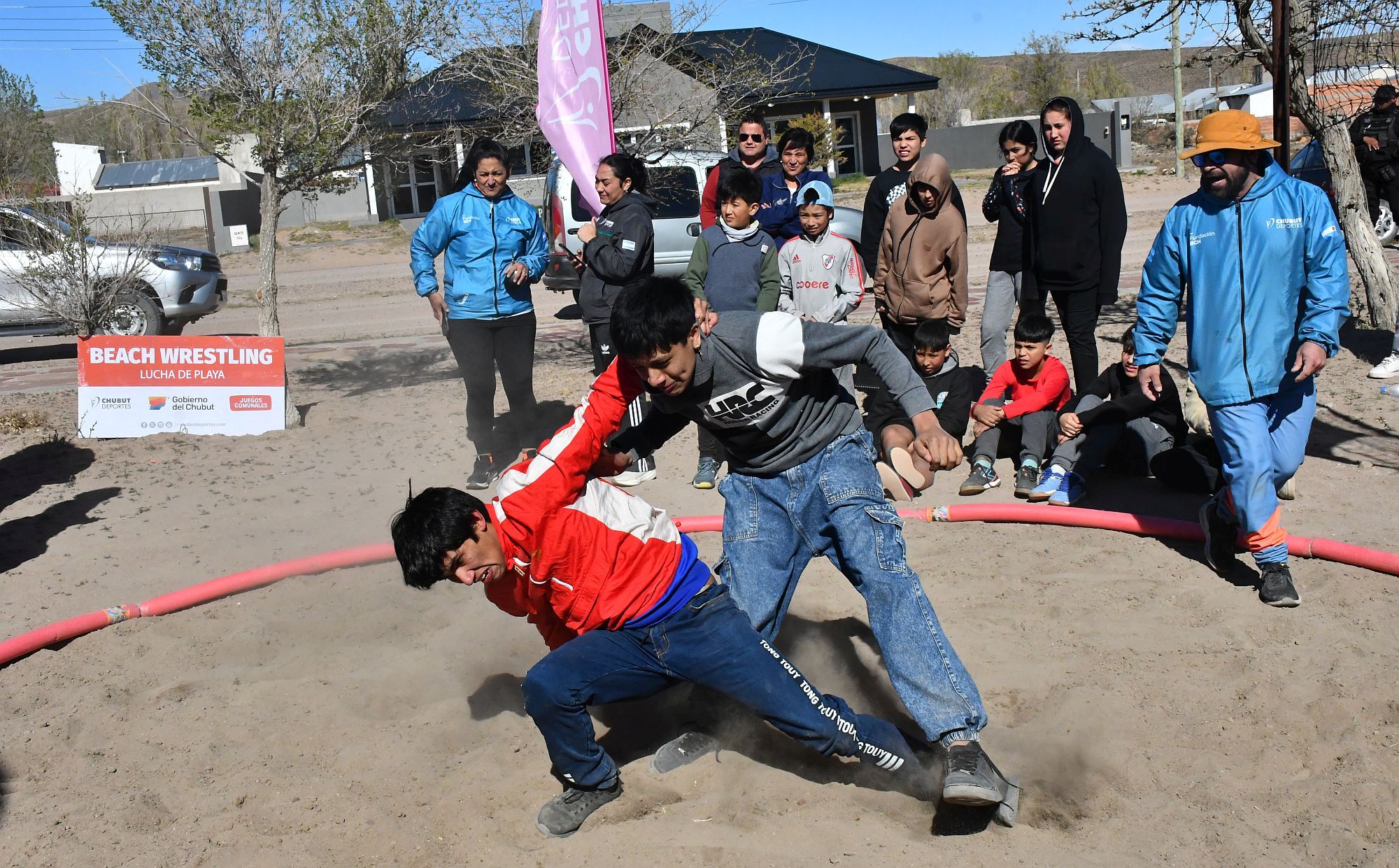 A su vez, el profesor Omar Gutiérrez, referente de la Lucha Olímpica en Chubut Deportes, llevó adelante una exhibición de dicha disciplina en la plaza municipal, con la intención de fomentar y lograr acercar este deporte a niños y niñas del interior provincial, mostrándoles que también pueden soñar con llegar a competir algún día, representando a su localidad y a su provincia.
