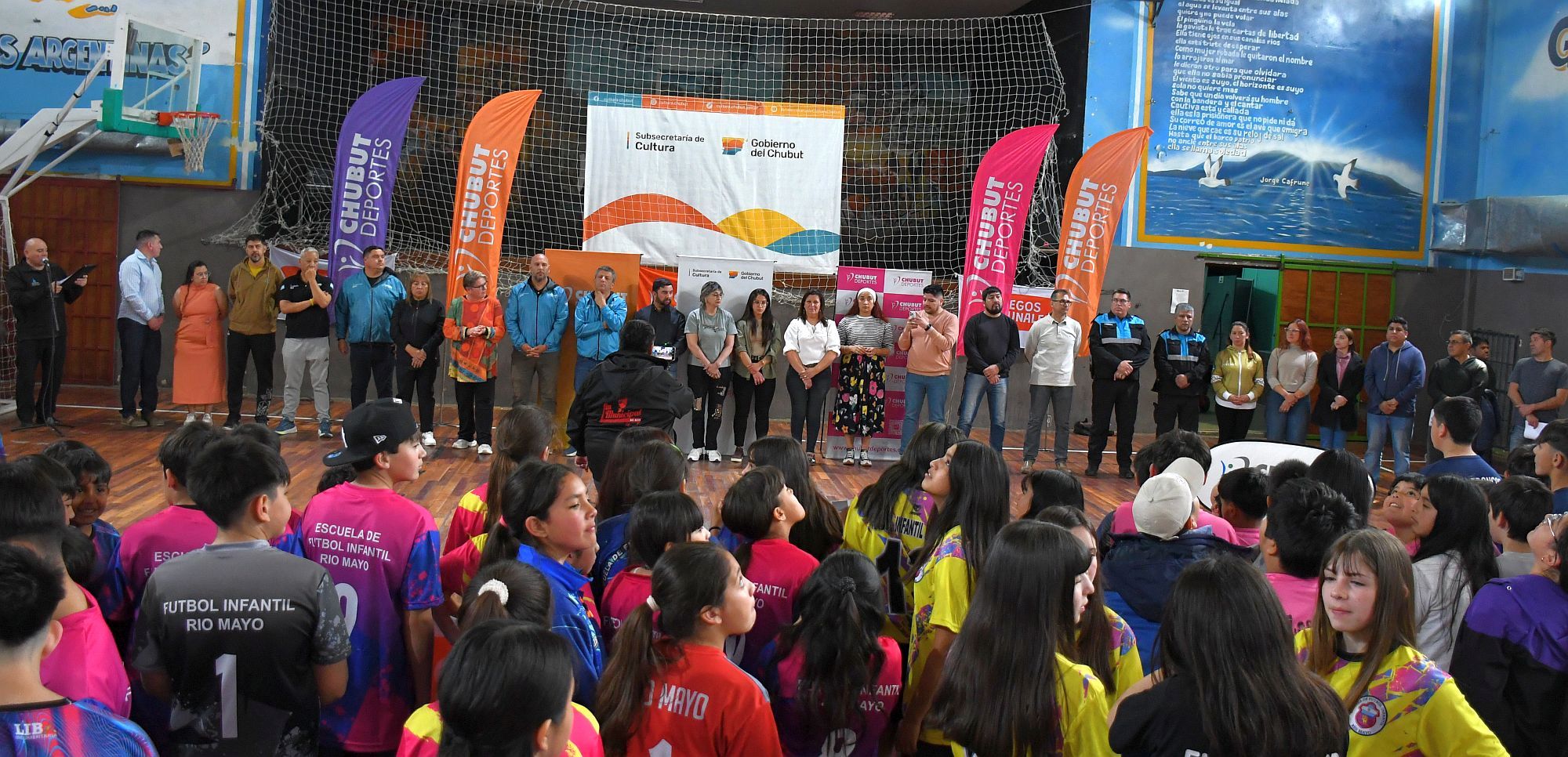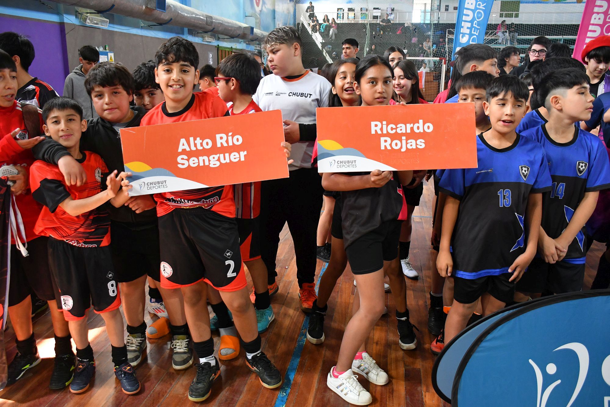 130 niños y niñas formaron parte del torneo de fútbol de Salón desarrollado este miércoles en Río Mayo, organizado por Chubut Deportes. Milton Reyes encabezó el acto inaugural y acompañó la jornada deportiva.