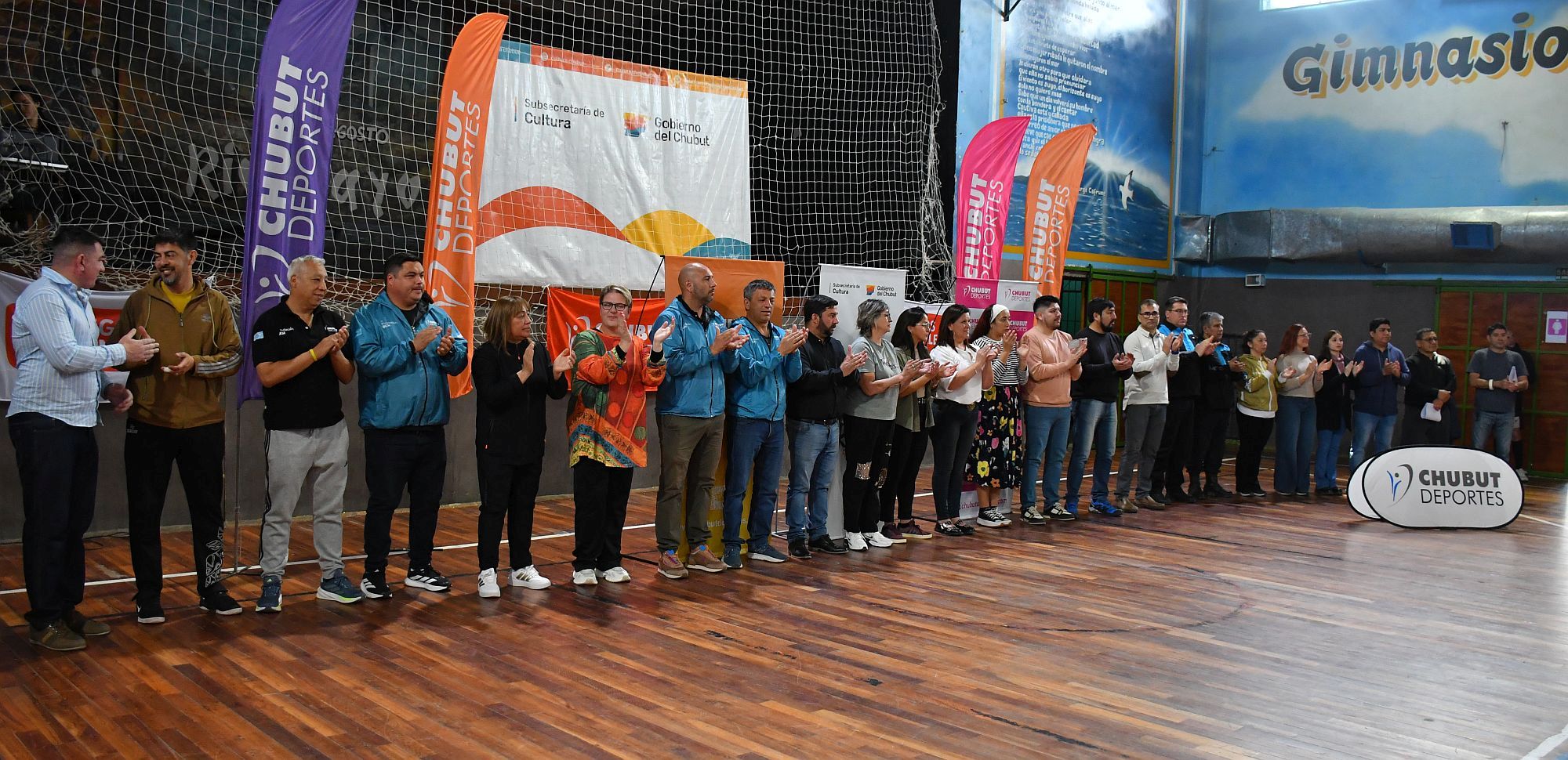 Cerca del mediodía se llevó a cabo el acto protocolar en el Gimnasio Municipal “Héroes de Malvinas”, con la presencia del intendente municipal Gustavo Loyaute, el presidente de Chubut Deportes Milton Reyes, los gerentes del ente deportivo, Mariano Ferro (General) y Darío Figueroa (Deportivo), la directora de la comuna rural de Lago Blanco, Micaela Bilbao, de Facundo, Vilma Pinilla, el director de Deportes local, Carlos Correa y la Directora de General de Artes y Promoción Cultural, Anabella Harneggtt, entre otras autoridades municipales.