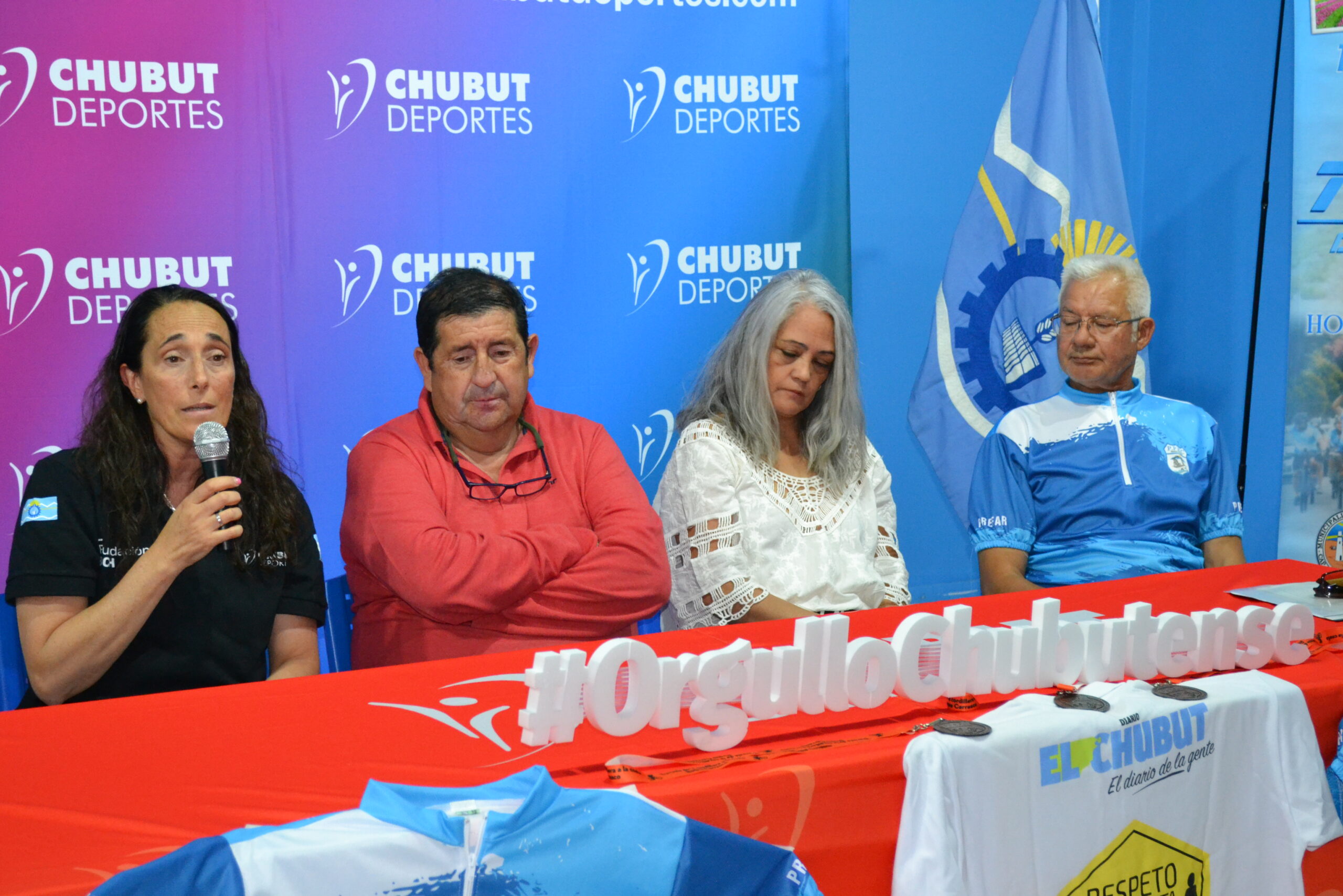En la presentación estuvieron presentes Alejandra Ibrahim, miembro del Directorio de Chubut Deportes, Gastón Williams, director de deportes de la Municipalidad de Rawson, y los organizadores de la “Asociación Pasión por el Ciclismo”: Manuel “Palito” Tenorio (presidente),