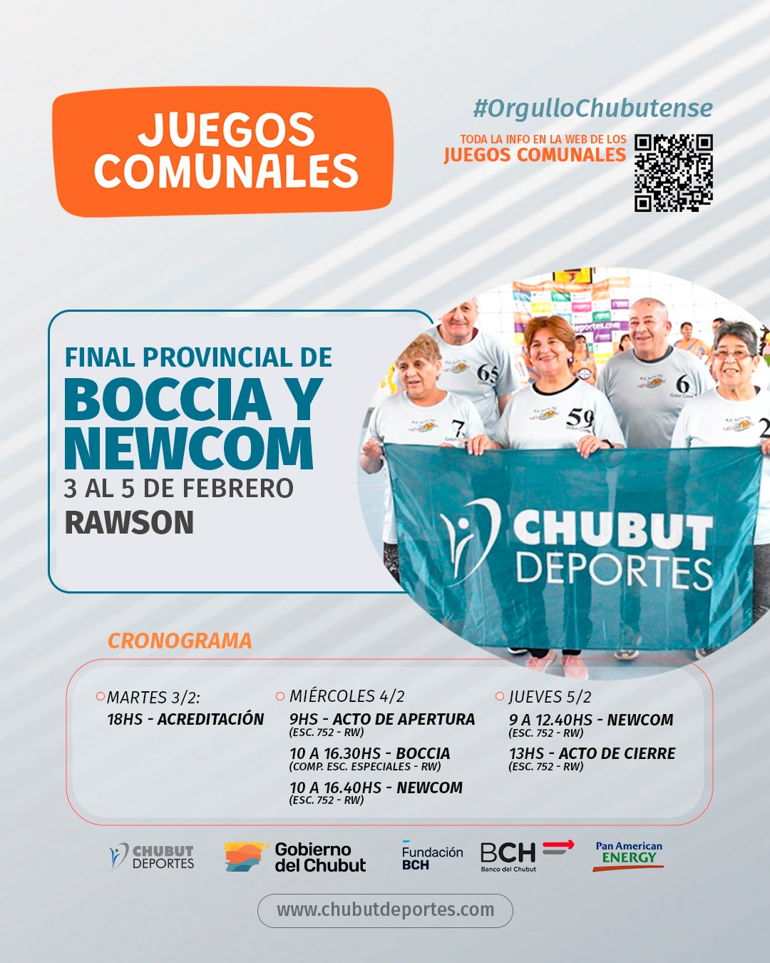 Federico Rodríguez, subgerente de deporte comunitario y escolar de Chubut Deportes, dialogó con el área de prensa y contó: “venimos trabajando muy fuerte para que el evento sea de calidad, recibir a los participantes con un torneo de newcom en el cual se reúnen siete equipos de toda la provincia que fueron disputando en sus respectivas sedes para ganarse un lugar en esta etapa provincial, con el agregado ahora de la disciplina de boccia que es algo nuevo que busca incluir a los adultos mayores que tengan movilidad reducida y para incentivar la práctica deportiva saludable dentro de cada localidad, esto se practica en un lugar cerrado con condiciones que se pueden desarrollar en todas las comunas así que incursionando y expectantes con esta nueva actividad”.