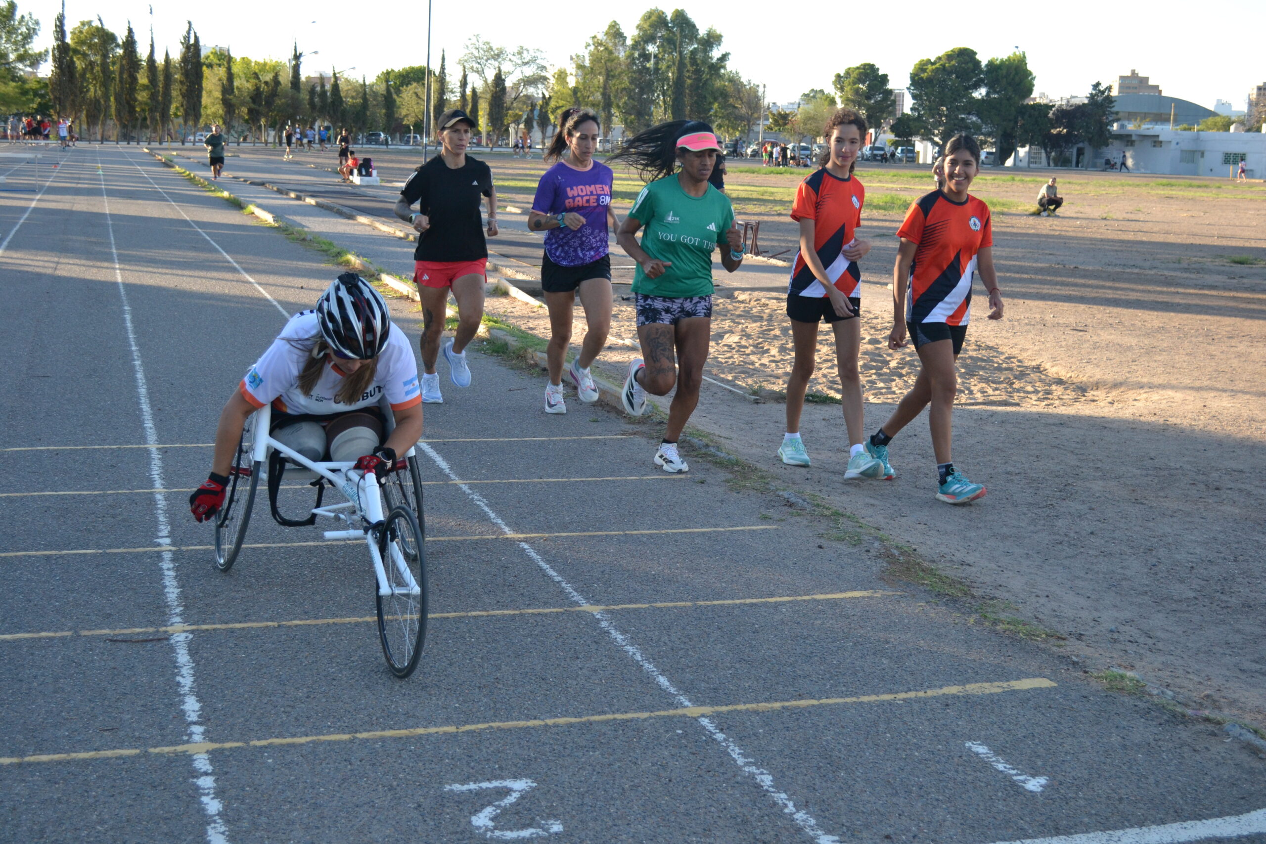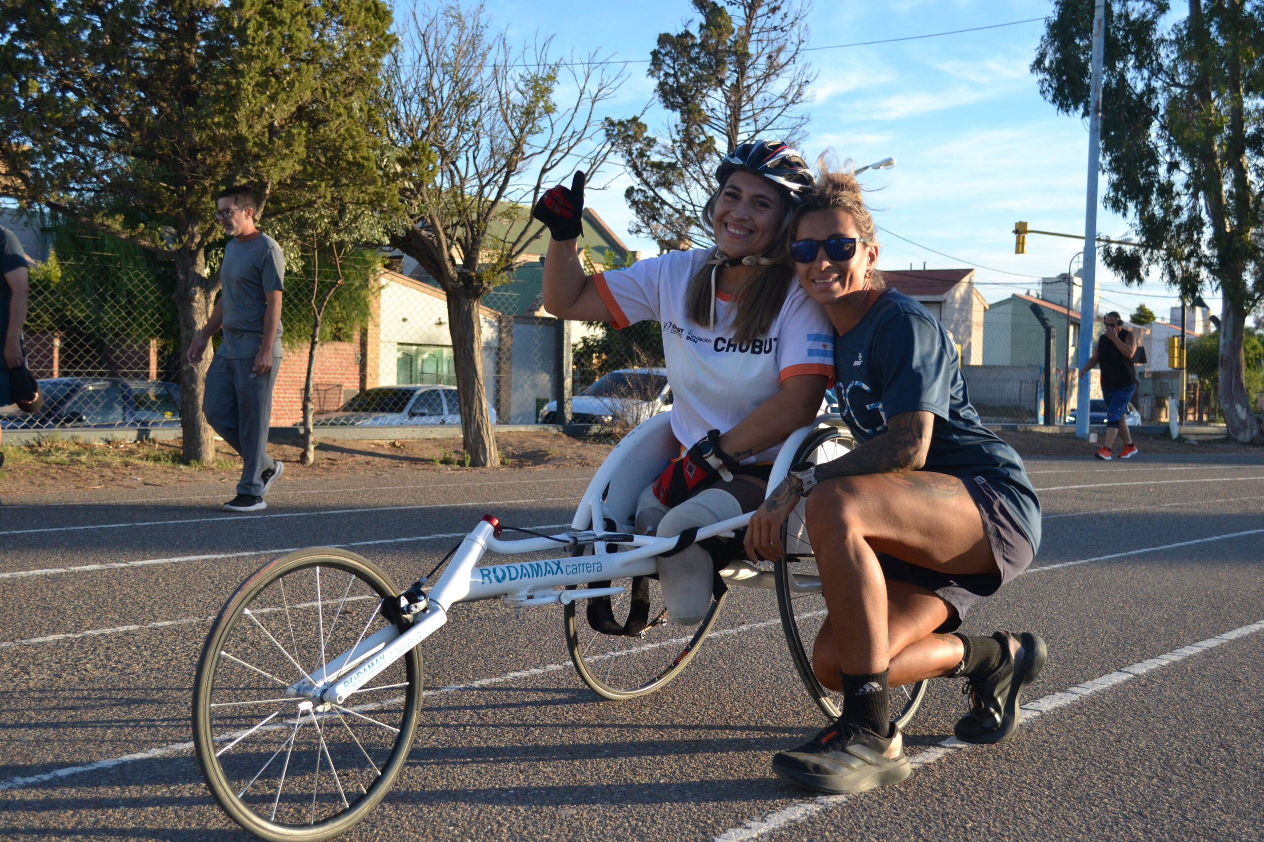 “El domingo pasado en el Día de la Mujer estuvimos en la carrera de los 4k, hicimos la primera carrera y me sentí muy cómoda, había un poco de viento que se hizo sentir, es algo nuevo para mí esta silla, pero todo perfecto por suerte. Estoy muy feliz, hace muy poquito empezamos la pretemporada, es la primera vez que la hago acá en la pista de atletismo con ‘Vanshi’ Thomas, también está Silvana Caraballo de Chubut Deportes, estoy muy agradecida con Chubut Deportes por traerme la silla para poder salir a competir, probar otras cosas, incursionar en este deporte para mí va a ser todo nuevo”, contó.