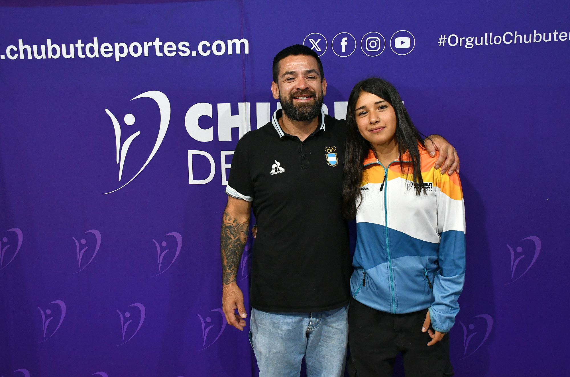 En la mañana de este jueves, el gerente Deportivo Darío Figueroa y la profesora Alejandra Ibrahim, miembro del directorio de Chubut Deportes, recibieron a la deportista Yamila Proboste y a su entrenador Omar Gutiérrez.