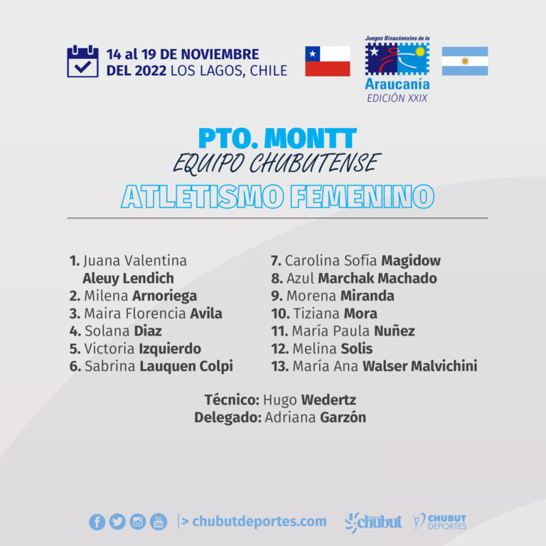 21 | 19/11/2022 | 10:30 | Final | PISTA ATLÉTICA IND – PUERTO MONTT | Pendiente | ![]() |